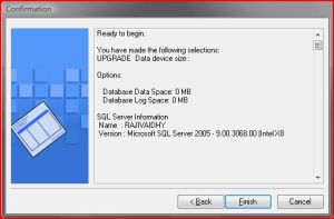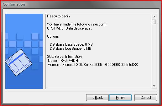 If you see the screenshot clearly, you could see the Database Size 0MB and stuffs like that. This is something which clearly frustrated me. It should have ideally continued with SQL Objects upgrade and configuration.