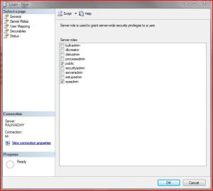 Well, I was upgrading from GP 10 RTM to GP 10 SP3. I got the error like ‘DYNSA user doesn’t have grant permission’. When I checked in SSMS, it was fine.Then again I ran GP Utilities, now it went fine. I was wondering what happened. Is anything wrong with GP 10 SP3 MSP?