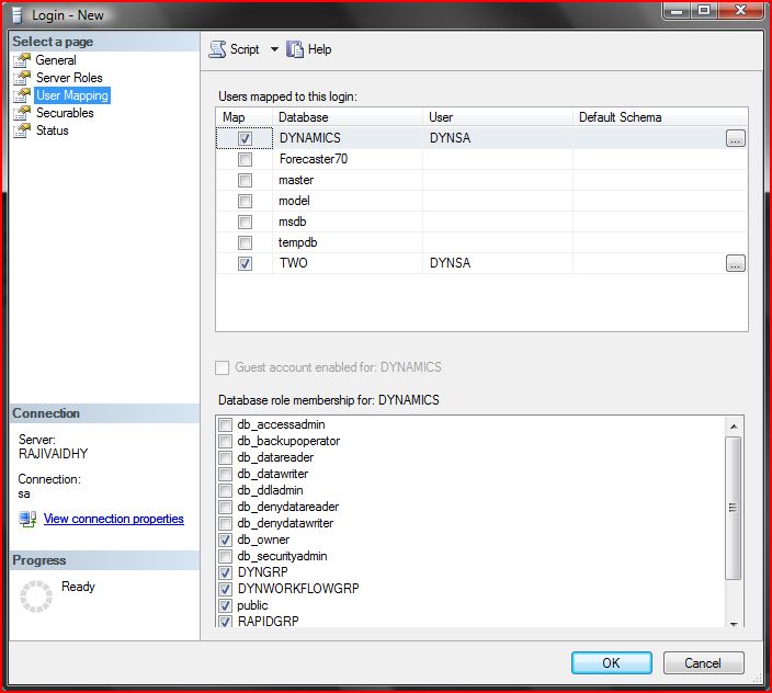 Just one thing which never got clarified: Why in the world the DYNSA user was not created when I installed GP 10.0 on my laptop for the first time? And if it actually did, why and when did it get deleted from my Database Logins?