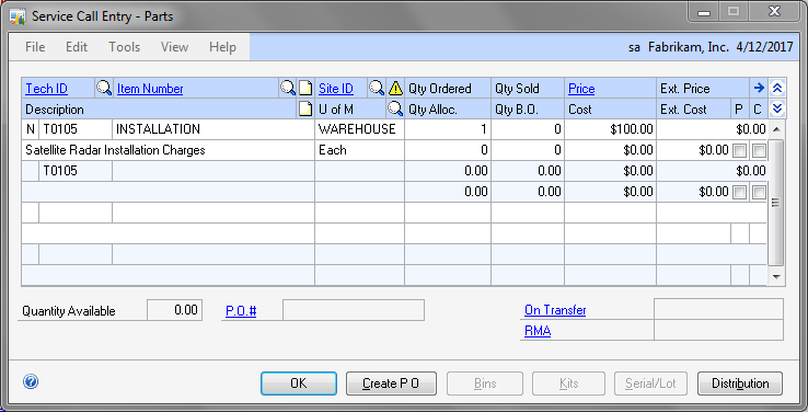 The one which I entered as “INSTALLATION” is a Non-Inventoried Item. And whenever we enter such Items, we get “EACH” as our Unit of Measure, as it is in SOP Entry.