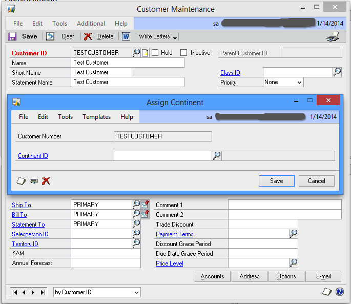 Third step; is to check whether things are properly done and confirm. Let me open Customer Maintenance and see if I can access this new Extender information: