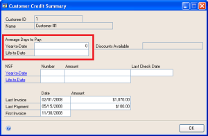 The time it took to pay the first invoice would provide the initial value for the Current ADTP. Any later invoices paid by this customer will provide the values for the number of invoices and the number of days taken to pay the most recent invoice. The ADTP calculated on the customer’s initial invoices then becomes the “Current ADTP.” You can use this value when you recalculate the ADTP for later invoices.