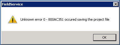 Unknown error 0 – 800AC351 occurred saving the project file – Error Message