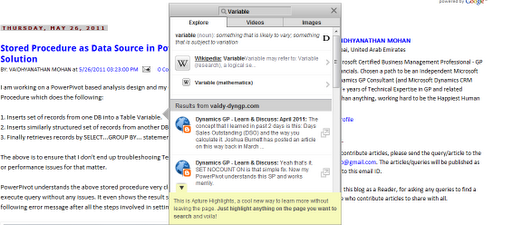 Just select any word on my blog posts and automatically a small icon that says “LEARN MORE” would appear. Just highlighting on that icon would do wonders as shown below:
