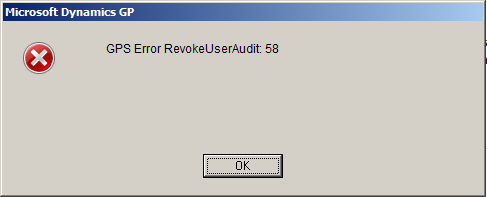 I could get only one link with exact error message, which I found on our Community Forum. User Access Setup Error: GPS Error RevokeUserAudit: 58.
