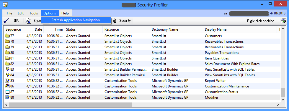 I had a suspicion that this must be something to do with “Remember this company” option on “User and Company” window. I decided to use GP Power Tools (previously Support Debugging Tool – SDT) and SQL profiler to study this message in depth.